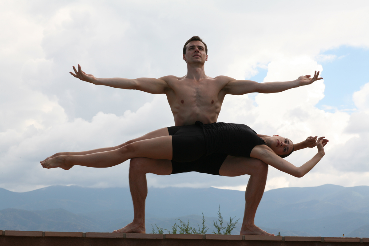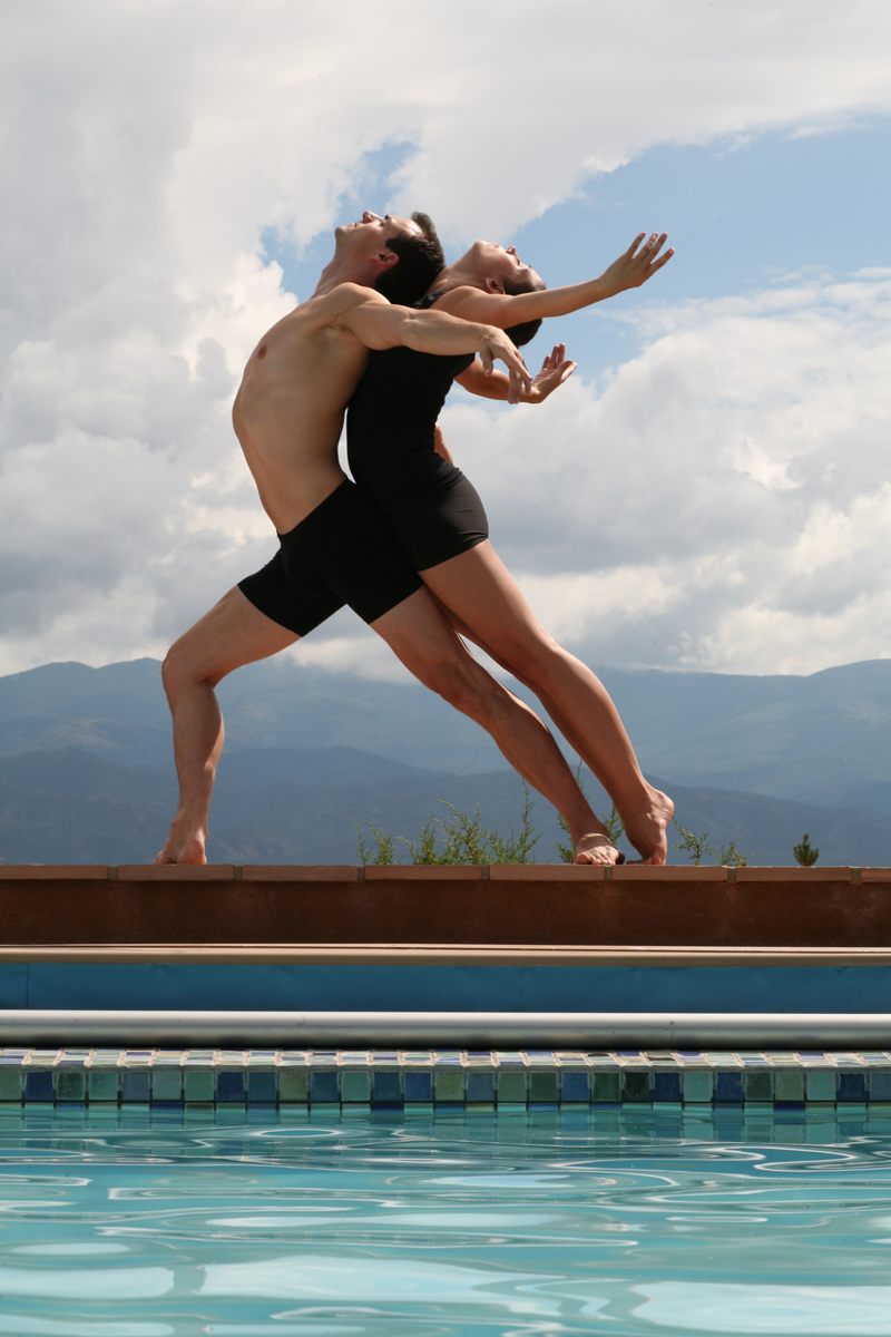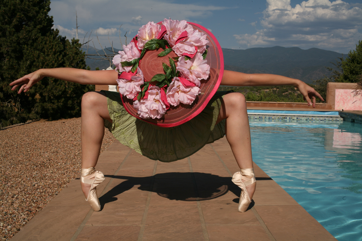 Santa Fe has been called “The Land of Enchantment”. Here Aspen Santa Fe Ballet principal dancers, Seth and Brook Grasso, perform perfect duets against the landscape with pool water beneath them. Santa Fe Opera Ballet’s Lily Peck plays with opera costumes and supporting cast adding wit and sensuality to perfect settings.